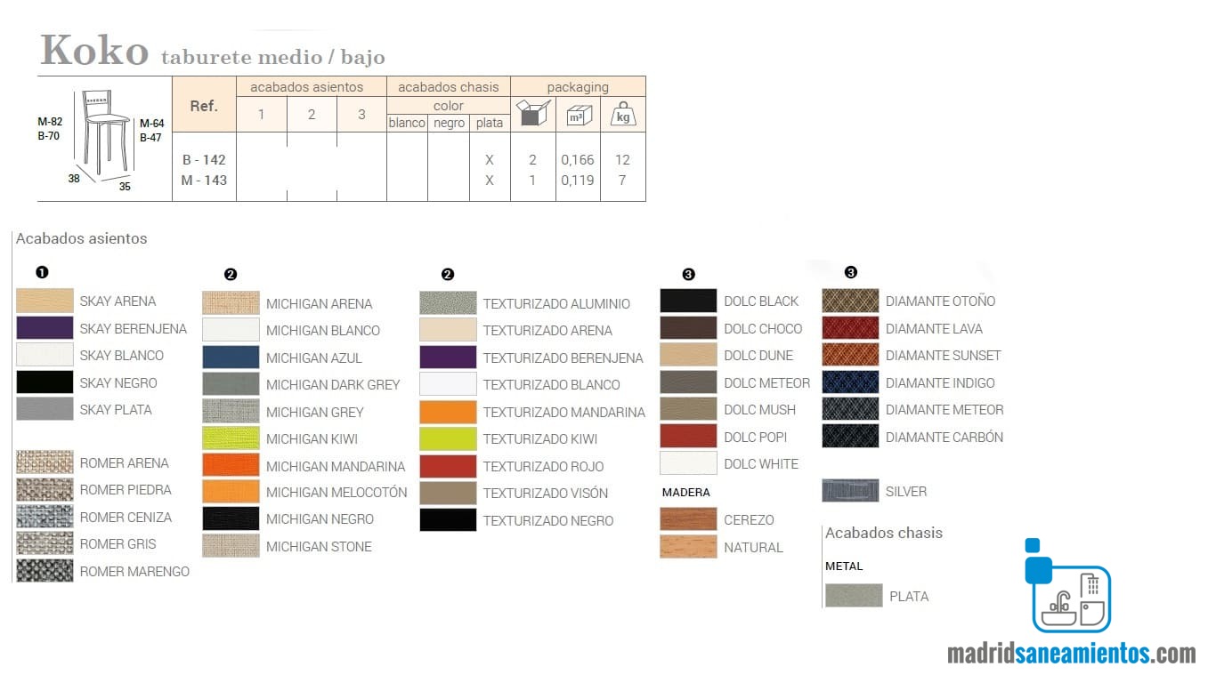– Las muestras de colores maderas y tapizados son orientativos y siempre se aceptarán pequeñas variantes sobre la realidad.