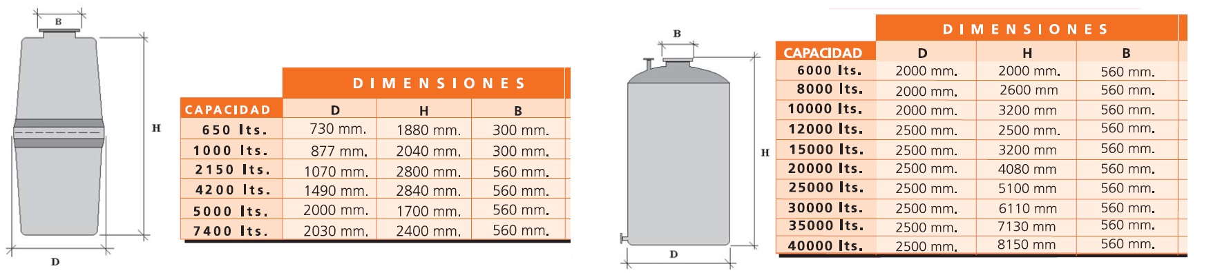 En superficie o enterrado. Depósitos en superficie desde 6.000 a 40.000 litros con soportes (aéreos)