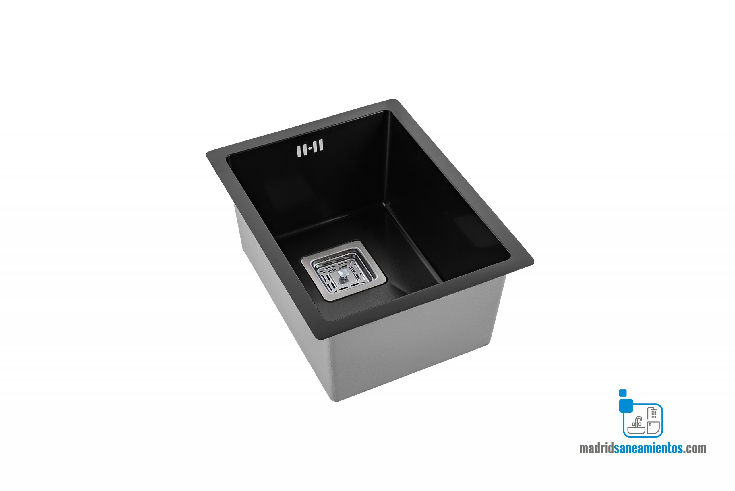 Fregadero acero 34 cm una cubeta línea actual Urdaplast. Gran capacidad, calidad y disponibilidad en dos colores inox y negro. Instalación Sobre, bajo encimera y enrasado.
