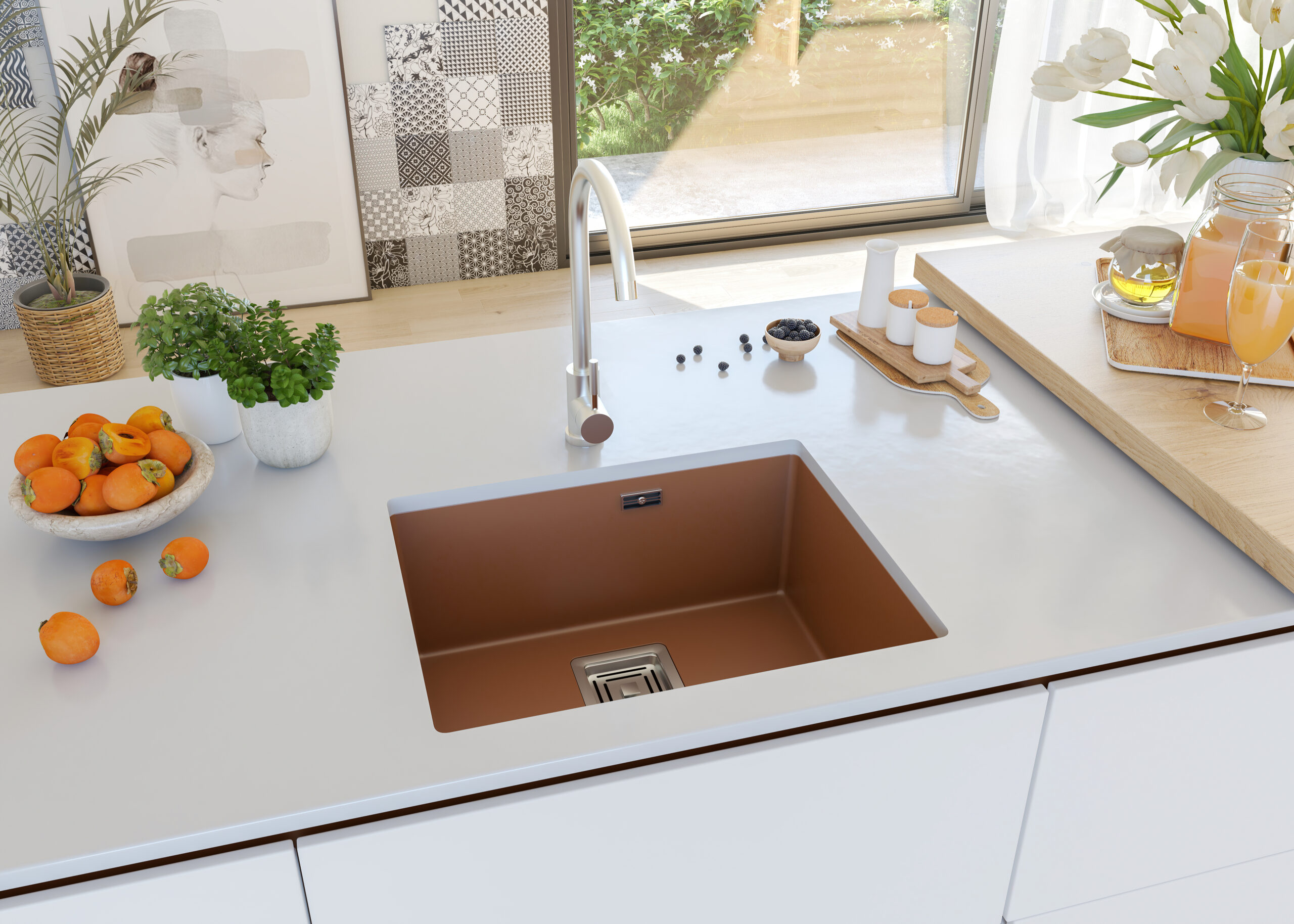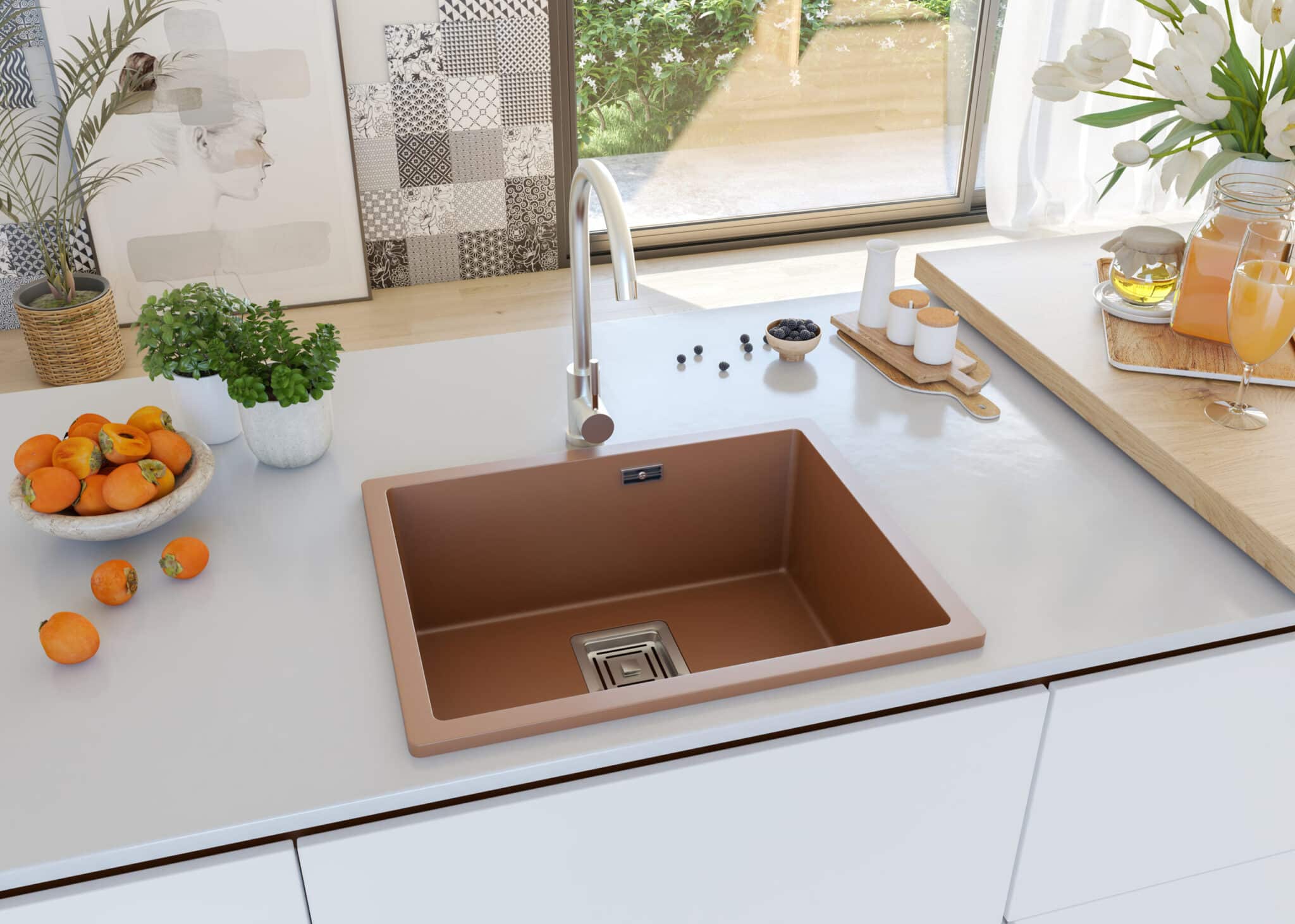 Fregadero de una cubeta apto para instalación bajo encimera y sobre encimera Urdaplast. Calidad y disponibilidad en distintos colores. Fabricación nacional.