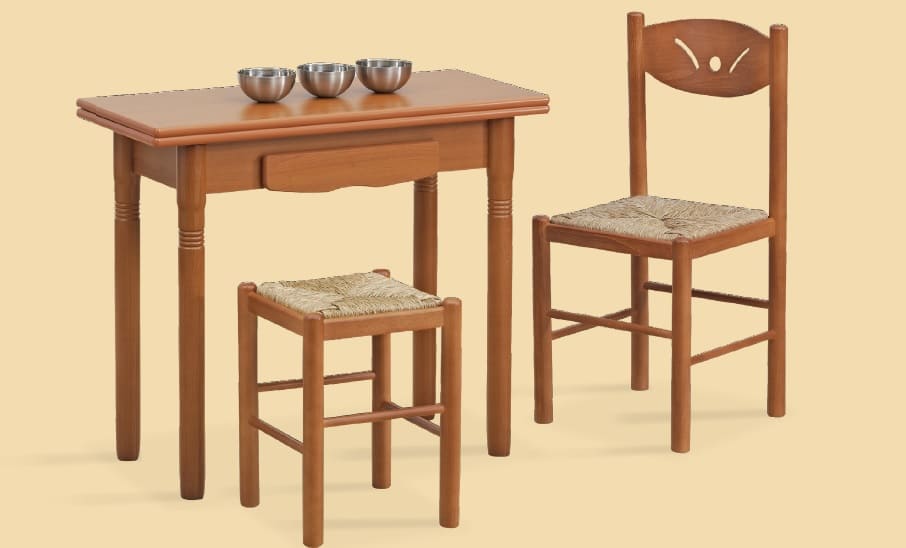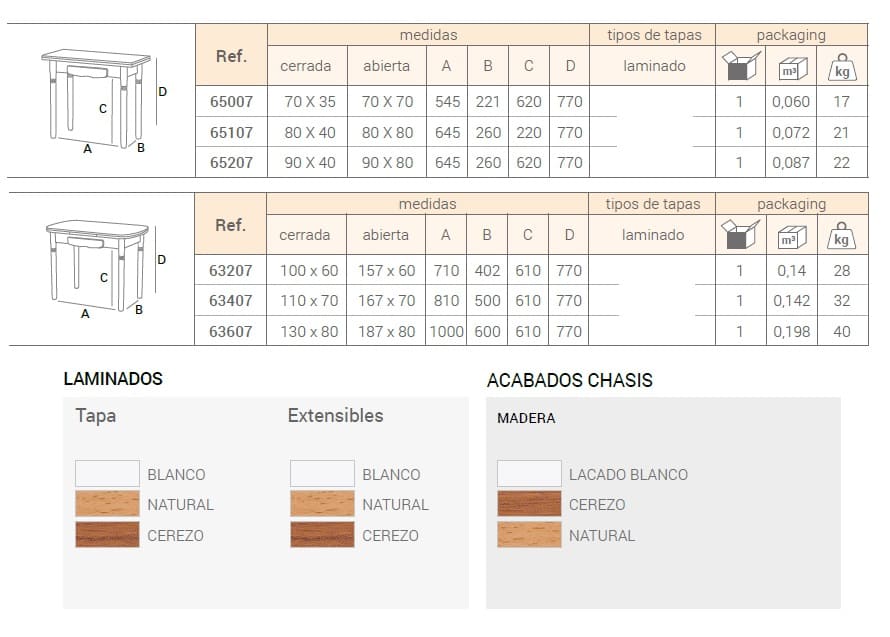 – Mesa 100×60 cm, 110×70 cm y 130×80 cm: Apertura extensible.
